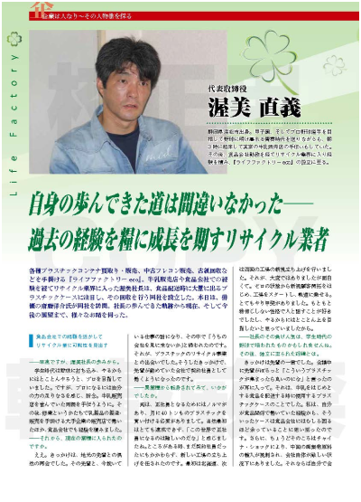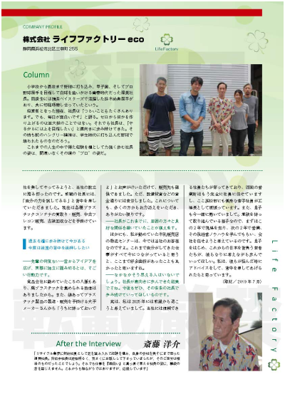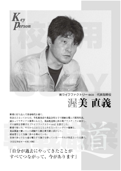当社で行っている取り組みや軌跡に興味を持っていただき、雑誌マスターズに掲載していただくため、俳優 斎藤洋介さんに取材していただきました。 代表の渥美直義が、株式会社ライフファクトリーecoを設立するまでに、どのような軌跡をたどり現在に至ったのか、また学生時代・契約社員時代の苦難のエピソードなどを取り上げていただき、過去の経験の積み重ねが現在の土台となっていることを、斎藤洋介さんと対談形式でお話ししました。